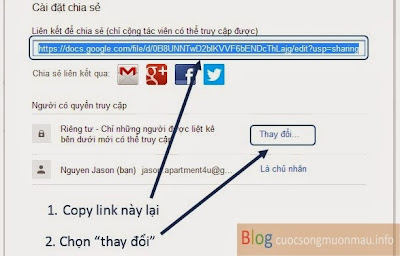 10.Dán cái link khi nãy ta copy ở bước 2 của hình trên ra đây, nếu quên bạn có thể copy lại bằng cách click phải vào file, chọn "Chia Sẻ". Mặc định đường dẫn (link) có dạng như sau: