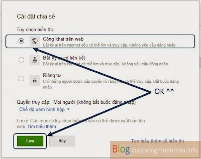 7.Sau khi upload thành công, một hộp thoại hiện lên, các bạn chọn chia sẻ để cài đặt sang chế độ public mới có thể sử dụng được.